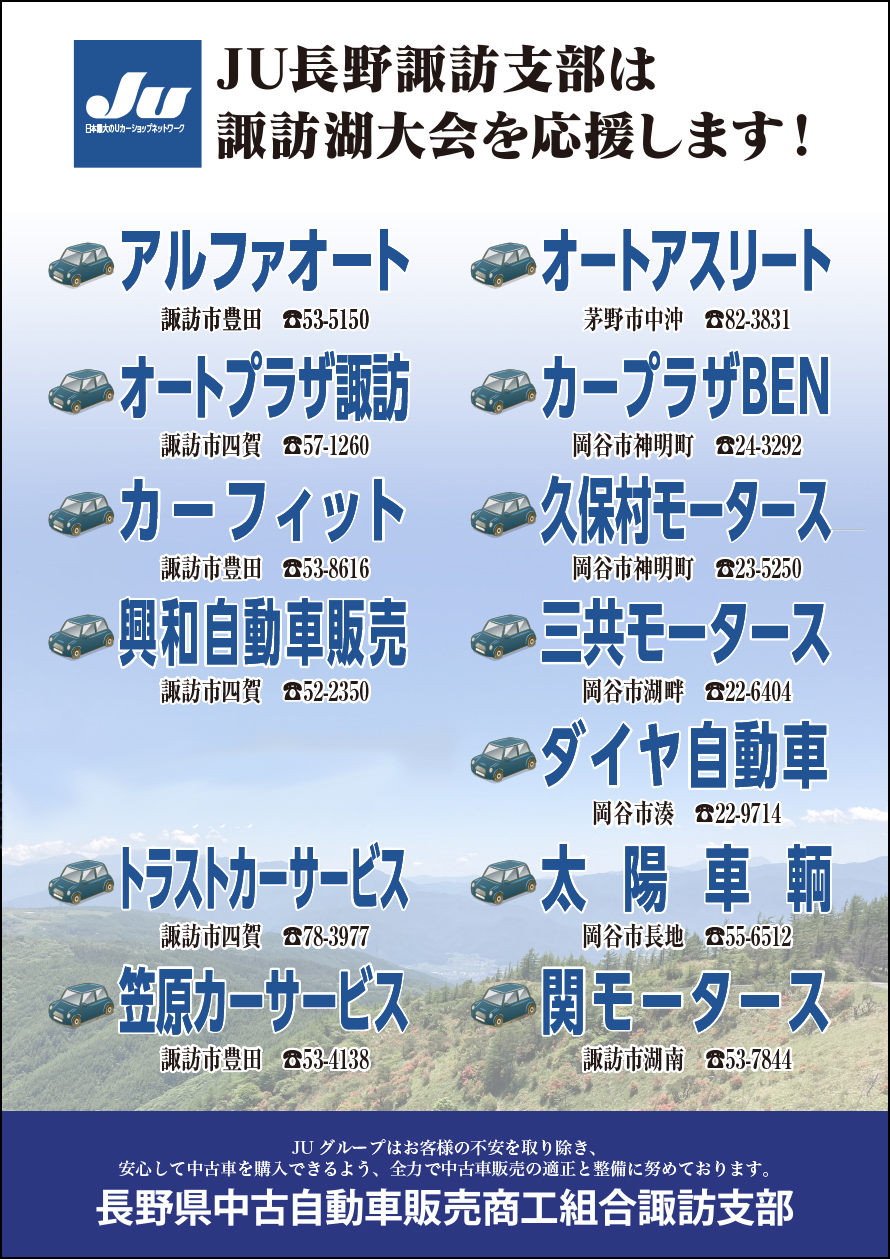 諏訪市、岡谷市、茅野市、下諏訪町、富士見町、原村、諏訪市教育委員会、岡谷市教育委員会、茅野市教育委員会、下諏訪町教育委員会、富士見町教育委員会、原村教育委員会、日刊スポーツ新聞社、信濃毎日新聞社、長野日報社、市民新聞グループ、エルシーブイ株式会社、マルエス株式会社、カサハラスポーツ、長野ツーリストサービス株式会社、諏訪信用金庫、アルペン、株式会社ピーエムオフィスエー、株式会社県民球団 (第42回実績)